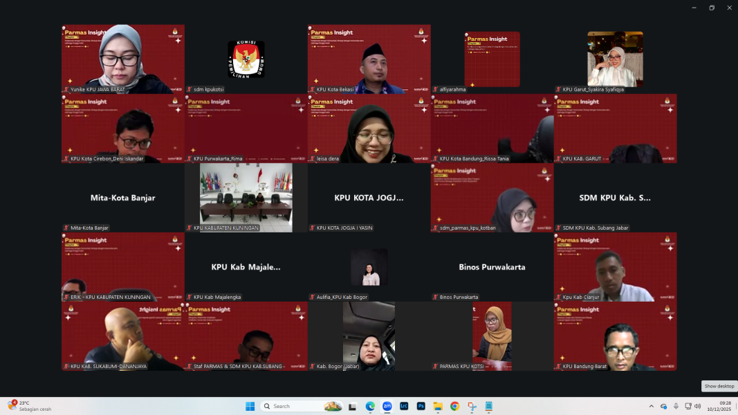 Sukabumi – Komisi Pemilihan Umum (KPU) Kabupaten Sukabumi mengikuti kegiatan Parmas Insight Chapter #9 yang diselenggarakan oleh KPU Provinsi Jawa Barat secara daring melalui Zoom Meeting, Rabu (10/12/2025). Kegiatan ini mengangkat tema “Kolaborasi dengan Komunitas (Sinergi dengan komunitas seni, olahraga hingga hobi)” sebagai upaya memperluas pendekatan pendidikan pemilih di luar ruang-ruang formal.