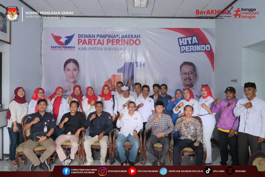 Ketua dan Anggota KPU Kabupaten Sukabumi melaksanakan kegiatan konsolidasi dan silaturahmi ke DPD Partai Perindo Kabupaten Sukabumi pada Selasa 23 Desember 2025. Kunjungan tersebut merupakan bagian dari upaya membangun komunikasi yang konstruktif antara penyelenggara pemilu dan partai politik.