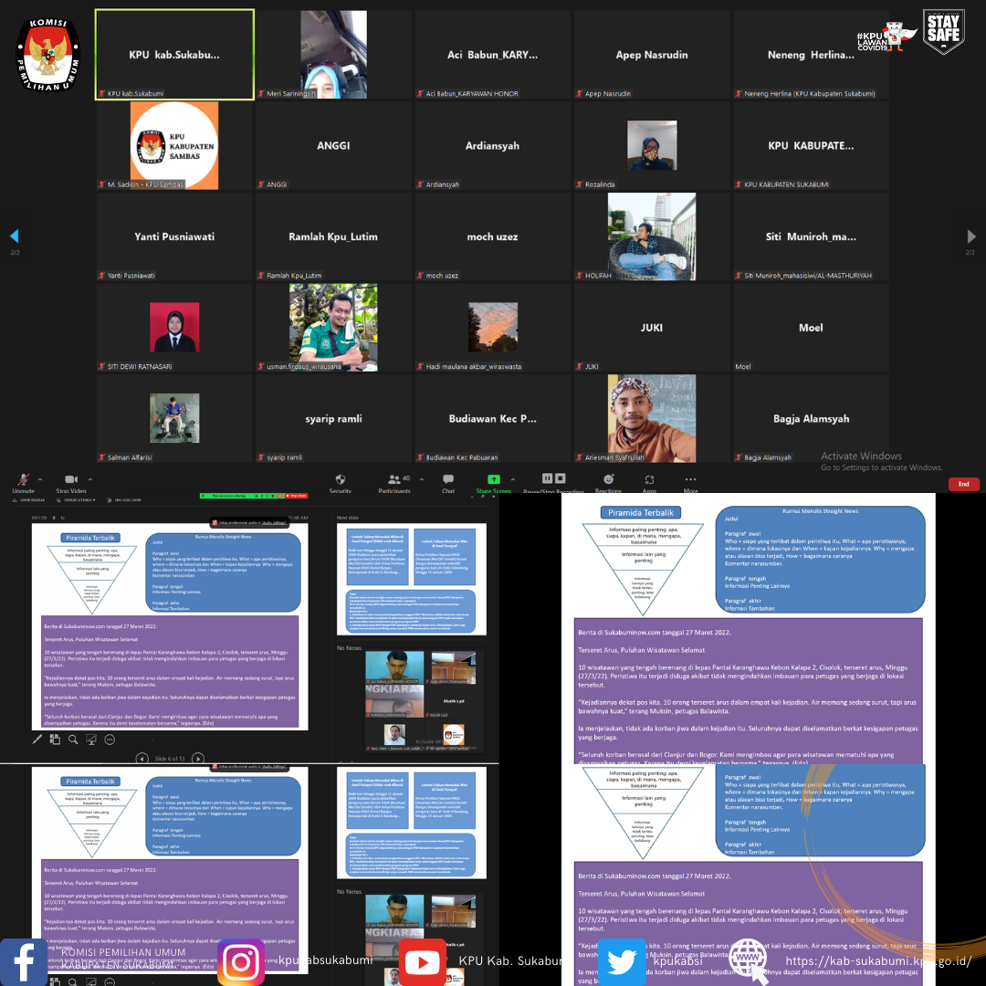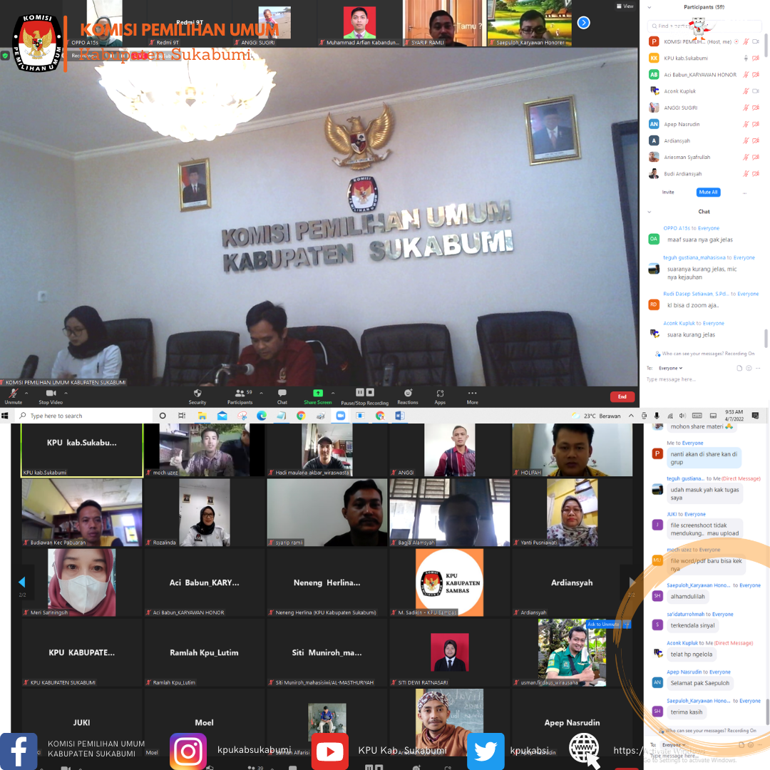 Komisi Pemilihan Umum (KPU) Kabupaten Sukabumi mengadakan pelatihan jurnalistik online. Kegiatan ini terbuka untuk umum, dengan jumlah kuota pendaftar sekitar 100 orang.