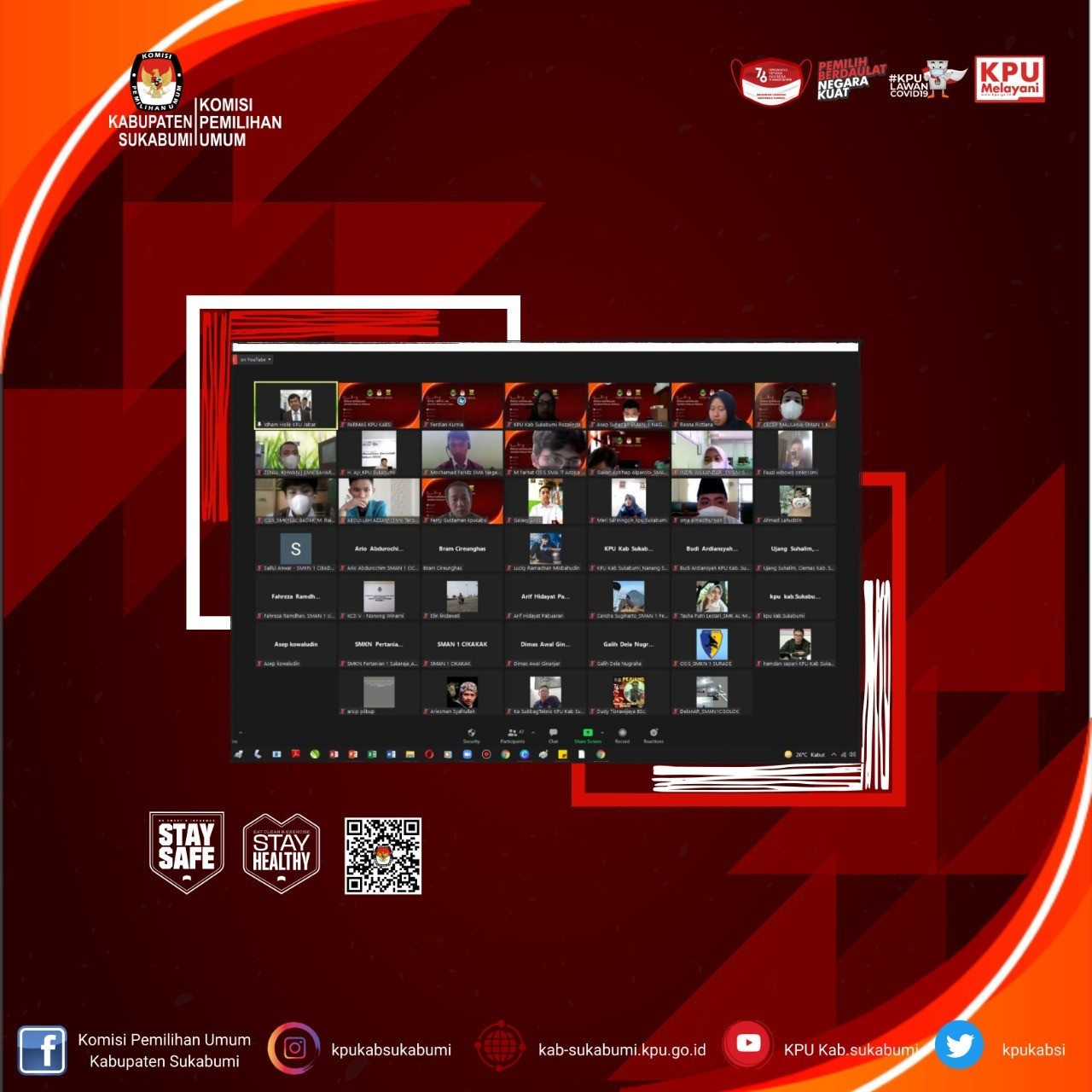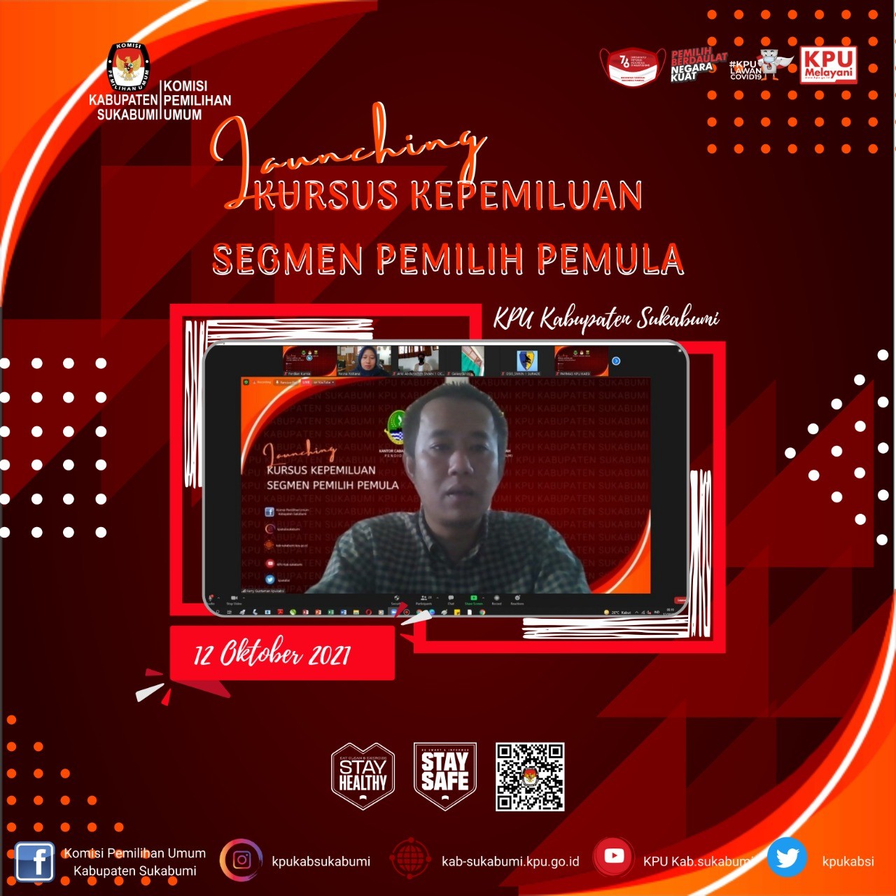 Komisi Pemilihan Umum (KPU) Kabupaten Sukabumi menggelar Launching “Kursus Kepemiluan Segmen Pemilih Pemula” secara daring, Selasa (12/10/2021).