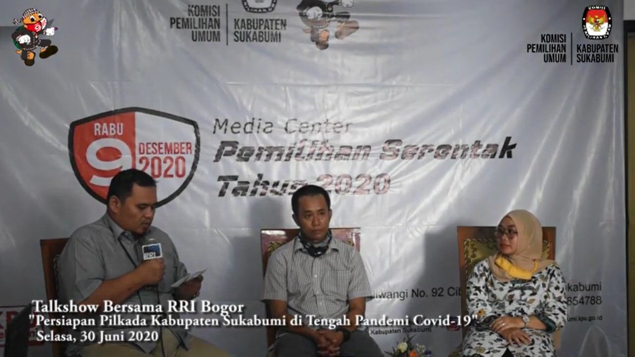 Selasa, 02 Juli 2020 KPU Kabupaten Sukabumi mengadakan Talkshow bersama Radio Republik Indonesia (RRI) Bogor yang dipandu oleh Presenter Maulana Isnarto, dimana RRI Bogor berkunjung ke kantor KPU Kabupaten Sukabumi untuk melakukan dialog interaktif yang akan membahas mengenai persiapan pelaksanaan Pilkada Kabupaten Sukabumi, bersama Ketua KPU Kabupaten Sukabumi Mas Ferry Gustaman dan Koordinator Divisi SDM serta Organisasi Bawaslu Kabupaten Sukabumi Ibu Nuryamah.