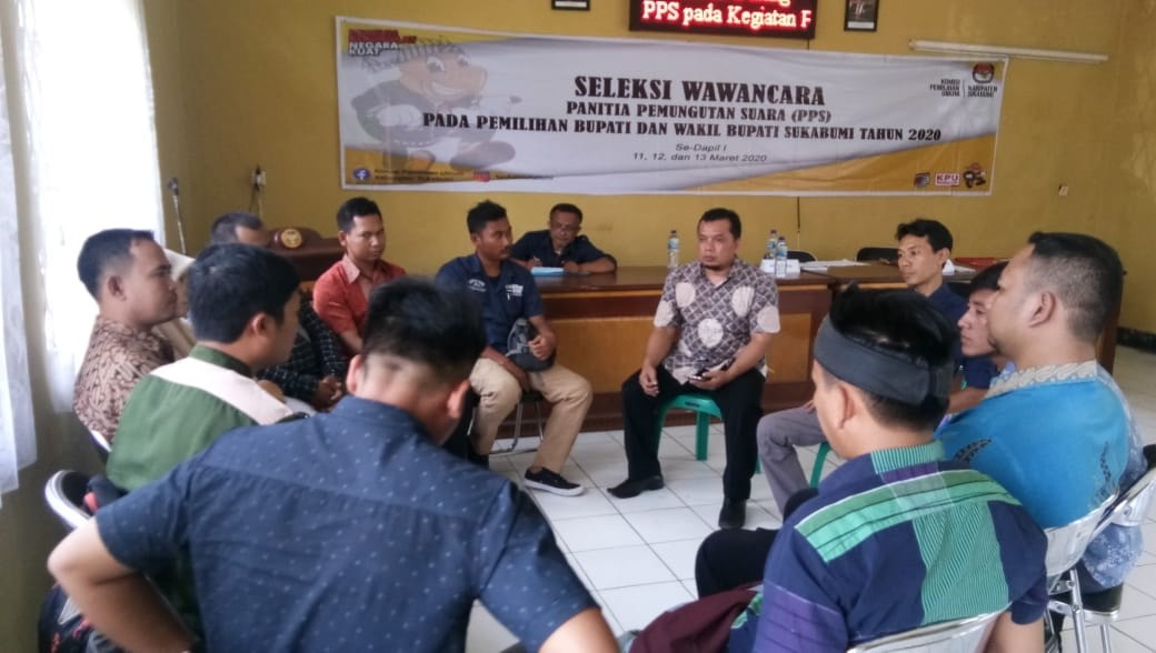 KPU Kabupaten Sukabumi melakukan Seleksi Wawancara bagi Calon Anggota PPS yang telah dinyatakan lulus Seleksi Administrasi dam Seleksi Tertulis. Seleksi Wawancaran ini dilakukan pada 11-12 Maret 2020. Adapun untuk tempat seleksi wawancara ini hampir sama dengan seleksi tertulis sebelumnya yakni dengan zona daerah pemilihan.