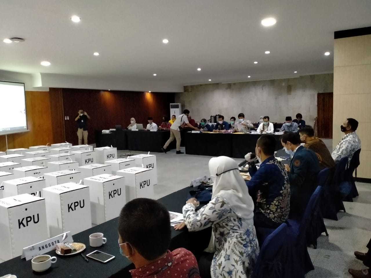 Komisi Pemilihan Umum (KPU) Kabupaten Sukabumi menggelar rapat pleno terbuka rekapitulasi hasil perhitungan suara Pemilihan Bupati dan Wakil Bupati Sukabumi Tahun2020. ( Rabu, 16/12/2020 )