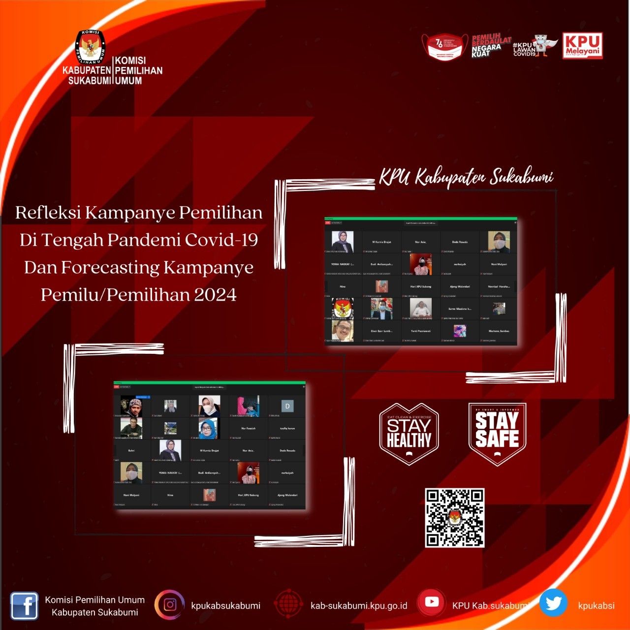 Komisi Pemilihan Umum (KPU) Kabupaten Sukabumi menggelar Webinar Pendidikan Pemilih Dengan Tema "Refleksi Kampanye Pemilihan Di Tengah Pandemi Covid-19 Dan Forecasting Kampanye Pemilu/Pemilihan 2024.