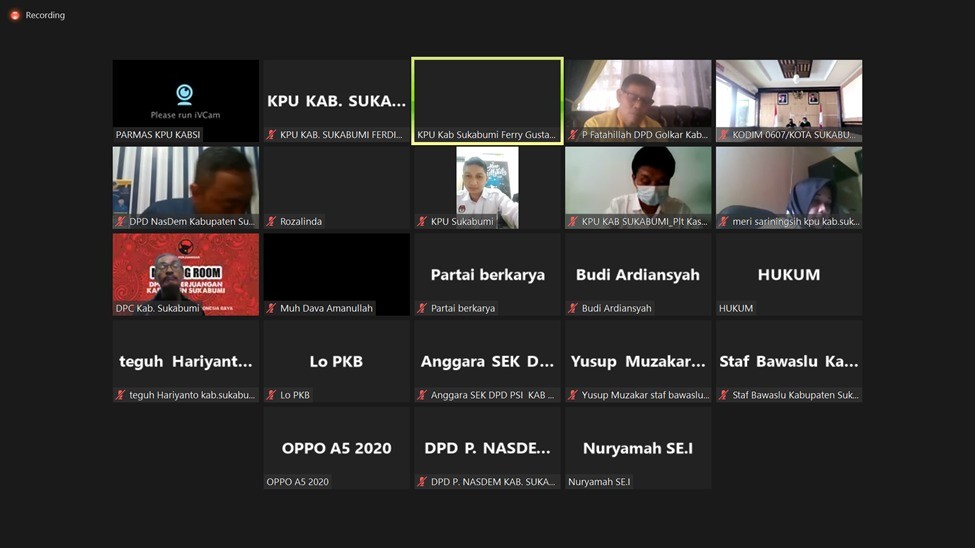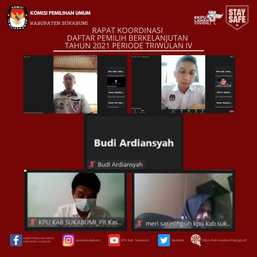KPU Kabupaten Sukabumi mengelar Rapat Pleno Daftar Pemilih Berkelanjutan (DPB) periode Triwulan IV Tahun 2021 secara secara daring menggunakan Aplikasi Zoom Meeting, Senin (27/12/2021).