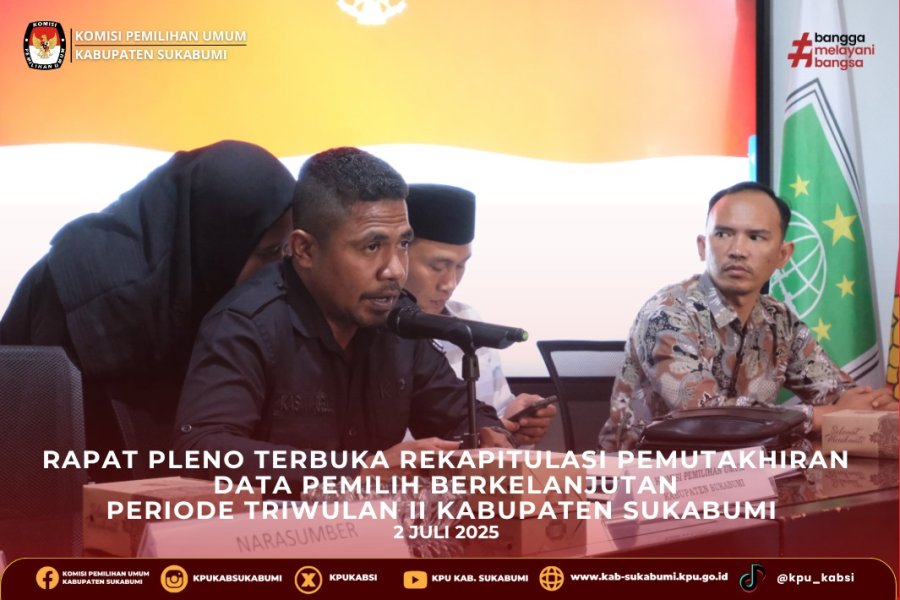 Berdasarkan ketentuan Pasal 5 ayat (1) Peraturan Komisi Pemilihan Umum Nomor 1 Tahun 2025 tentang Pemutakhiran Data Pemilih Berkelanjutan, KPU Kabupaten Sukabumi telah melaksanakan Rapat Pleno Terbuka Rekapitulasi Pemutakhiran Data Pemilih Berkelanjutan (PDPB) untuk Periode Triwulan II Tahun 2025.