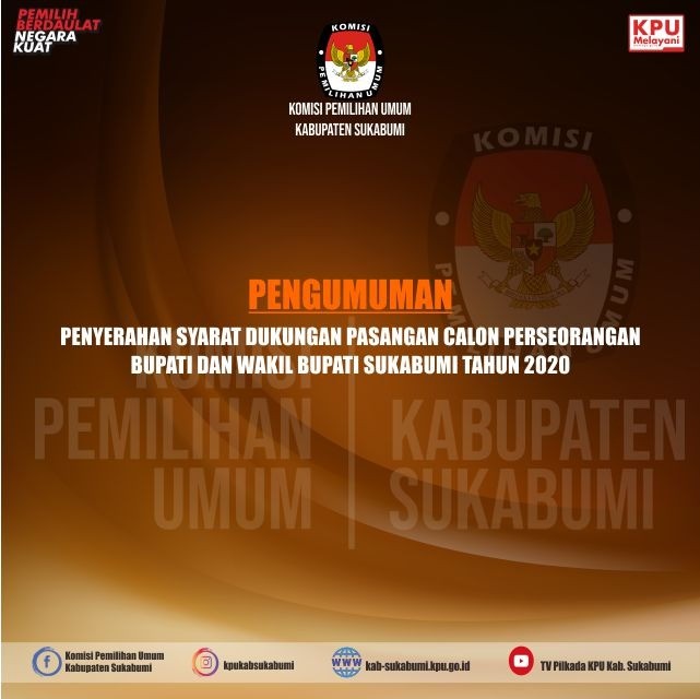 Pengumuman Penyerahan Syarat Dukungan Pasangan Calon Perseorangan Bupati Dan Wakil Bupati Sukabumi Tahun 2020