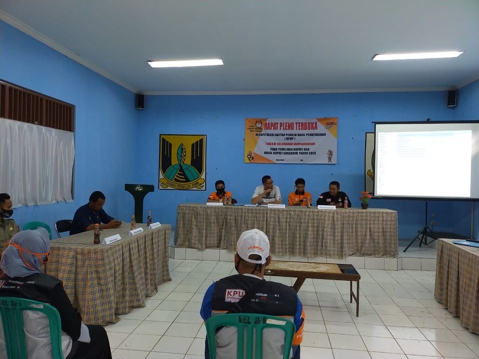 Rapat Pleno Terbuka Rekapitulasi Daftar Pemilih Hasil Pemutakhiran (DPHP) pada Pemilihan Bupati dan Wakil Bupati Sukabumi Tahun 2020 oleh PPS se-Kabupaten Sukabumi. Pelaksanaan kegiatan ini dilakukan secara serentak hari ini, 31 Agustus 2020. Oleh seluruh Desa di kecamatan Sukabumi.