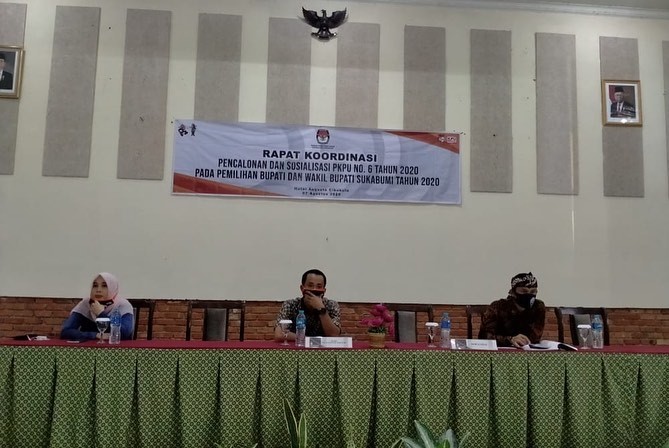 Jumat, 07 Agustus 2020. KPU Kabupaten Sukabumi laksanakan Rapat Koordinasi Pencalonan dan Sosialisasi PKPU No. 6 tahun 2020 pada Pemilihan Bupati dan Wakil Bupati Sukabumi tahun 2020 bertempat di Hotel Augusta Cikukulu Kabupaten Sukabumi.
