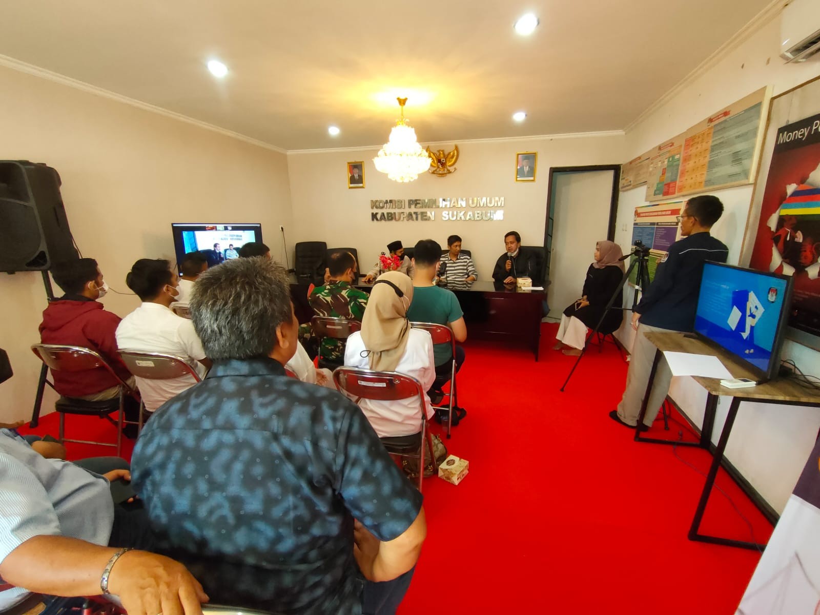 Cibadak, KPU Kabupaten Sukabumi melaksanakan kegiatan Rapat Koordinasi Daftar Pemilih Berkelanjutan Triwulan I dan Sosialisasi Tahapan Menjelang Pemilu Tahun 2024 (30/3/2022). Kegiatan ini dilaksanakan secara hybrid (daring dan luring) di ruang pertemuan KPU Kabupaten Sukabumi dan diikuti oleh Ketua dan Anggota KPU, Sekretaris KPU beserta jajaran, Ketua Bawaslu beserta jajaran, stakeholder terkait dari Pemerintah Kabupaten Sukabumi dan Partai Politik se-Kabupaten Sukabumi.