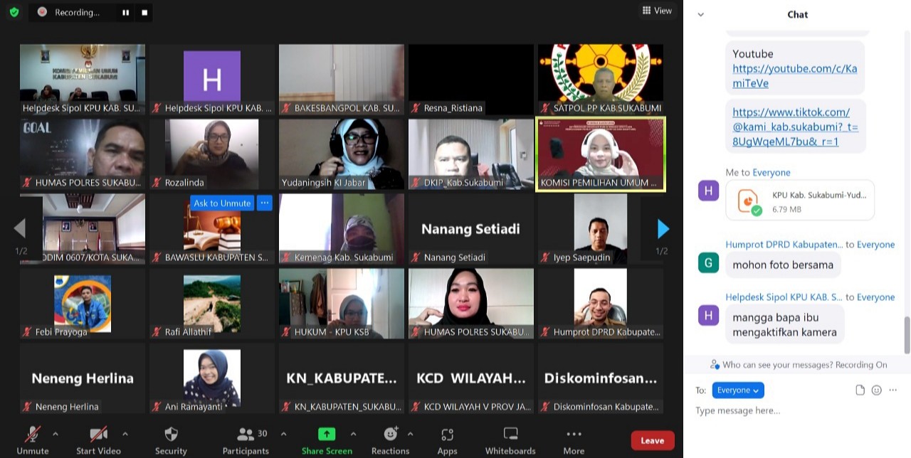 SEBAGAI UPAYA MEWUJUDKAN PEMILU YANG BERINTEGRITAS DAN AKUNTABEL, KPU KABUPATEN SUKABUMI ADAKAN WEBINAR BAKOHUMAS