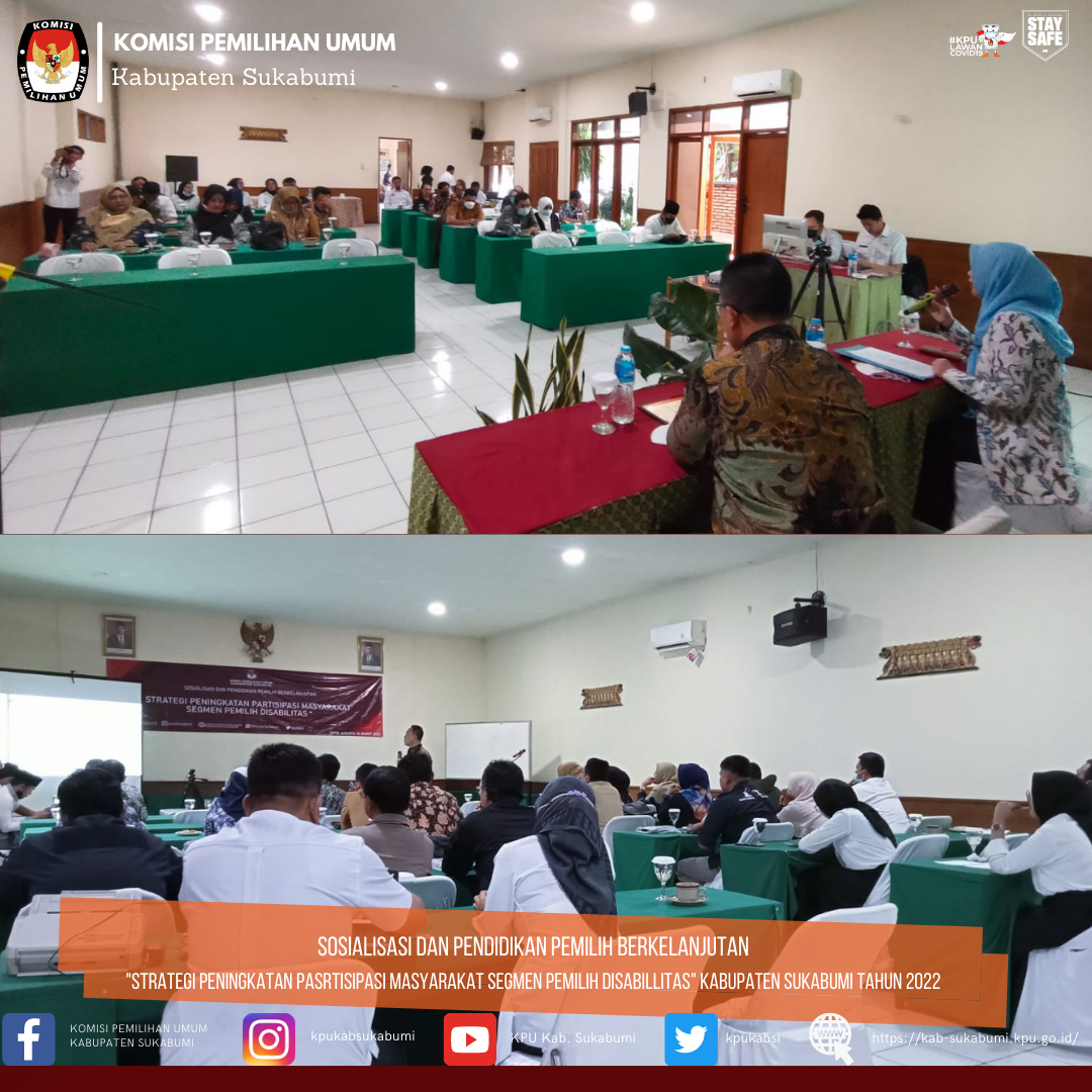 Hotel Augusta Cikukulu- KPU Kabupaten Sukabumi melaksanakan Sosialisasi dan Pendidikan Pemilih Berkelanjutan dengan mengusung tema " Strategi Peningkatan Partisipasi Masyarakat Segmen Disabilitas" (Senin, 28/03/2022).
