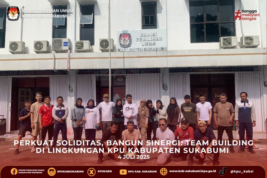 Sukabumi, 4 Juli 2025 – Dalam rangka memperkuat kekompakan dan membangun semangat kerja tim, KPU Kabupaten Sukabumi menyelenggarakan kegiatan Team Building yang diikuti oleh seluruh jajaran pegawai di lingkungan Sekretariat. Kegiatan ini berlangsung pada hari Jumat, 4 Juli 2025, dan menjadi momen penting untuk menumbuhkan rasa kebersamaan serta mempererat hubungan kerja antarsubbagian.